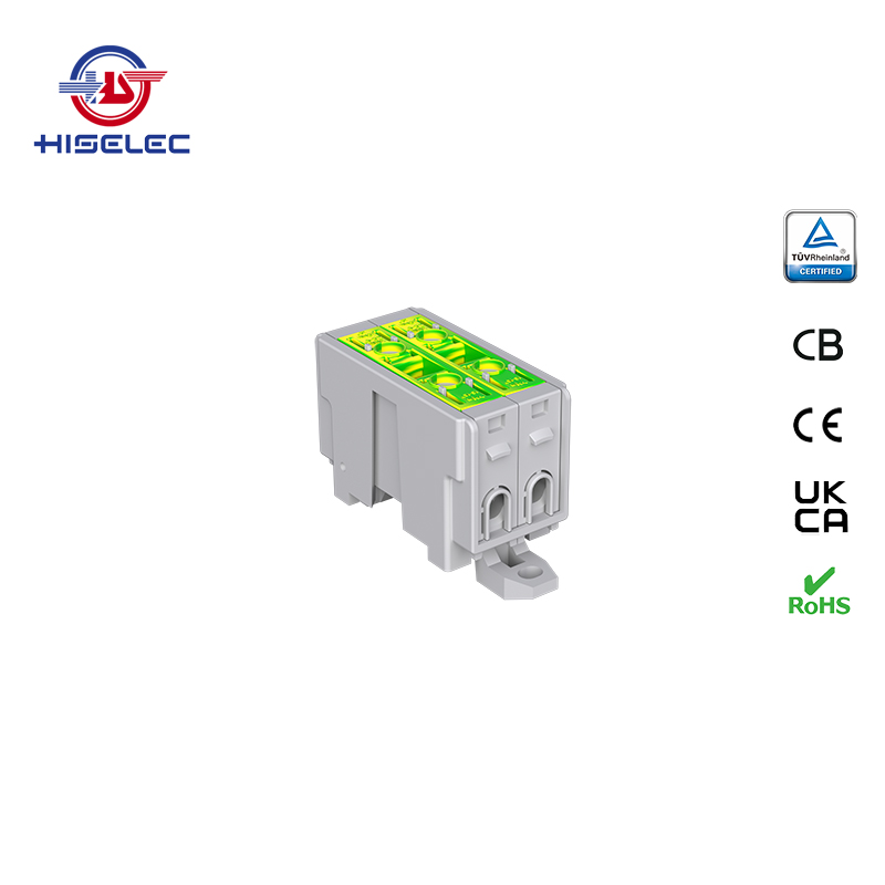 SAT series Al/Cu universal terminal block is totally patent design product by HISELEC, which offers the best quality, safety installation features in the market. All the product already got TUV, CB, CE, UKCA, RoHS certificate. It was designed for both copper conductor and Aluminum conductor. The most important is this terminal block are allowed each pieces of product can connect each other easily.