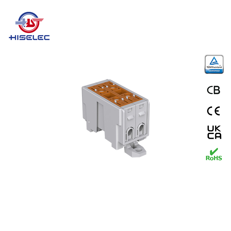SAT series Al/Cu universal terminal block is totally patent design product by HISELEC, which offers the best quality, safety installation features in the market. All the product already got TUV, CB, CE, UKCA, RoHS certificate. It was designed for both copper conductor and Aluminum conductor. The most important is this terminal block are allowed each pieces of product can connect each other easily.