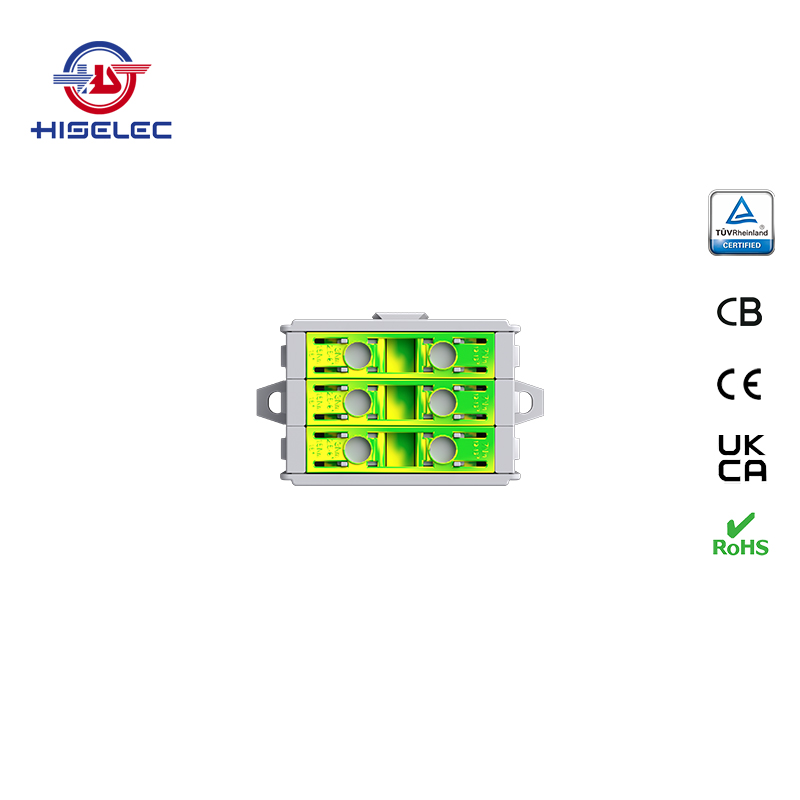 SAT series Al/Cu universal terminal block is totally patent design product by HISELEC, which offers the best quality, safety installation features in the market. All the product already got TUV, CB, CE, UKCA, RoHS certificate. It was designed for both copper conductor and Aluminum conductor. The most important is this terminal block are allowed each pieces of product can connect each other easily.