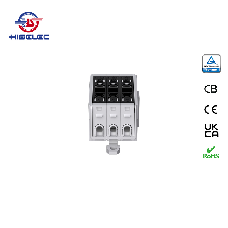 SAT series Al/Cu universal terminal block is totally patent design product by HISELEC, which offers the best quality, safety installation features in the market. All the product already got TUV, CB, CE, UKCA, RoHS certificate. It was designed for both copper conductor and Aluminum conductor. The most important is this terminal block are allowed each pieces of product can connect each other easily.