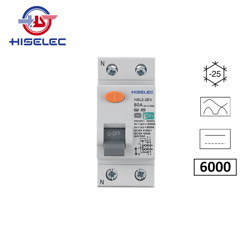 The HSL2 series 6kA type EV 1P+N & 3P+N RCCBs(residual current-circuit breaker) which can automatically and immediately cut off power supply once people suffers from electric shock or leakage current higher than specification value, so it can protect people’s security and avoid the damage to equipment. It’s main use is in EV-, PV- and battery solutions (equipment without the 6mA declarations). The RCCB comes in 1P+N, 36mm width (2 modules) and in 3P+N 72mm width (4 modules) and this in combination with a high breaking capacity of 6kA. The series ensures the best possible safety for people and equipment.